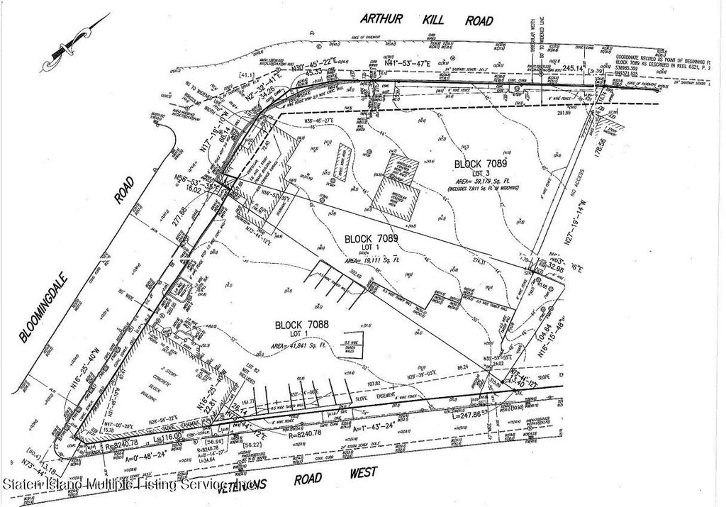 Approx. 100,000 SF with an M2-1 zone property, which includes all commercial use groups. Two buildings, one is 12,300 SF, and the other is 896 SF. Can access with three curb cuts from 440 Service Rd, Bloomingdale Rd, and Arthur Kill Rd. Potential supermarket, strip mall, automobile business, drive-thru facility, bank, restaurants, storage facilities, and sports complex. Number of parking spaces available based on what is to be built. Parcel ID #'s: 7088/001, 7089/001, and 7089/003.