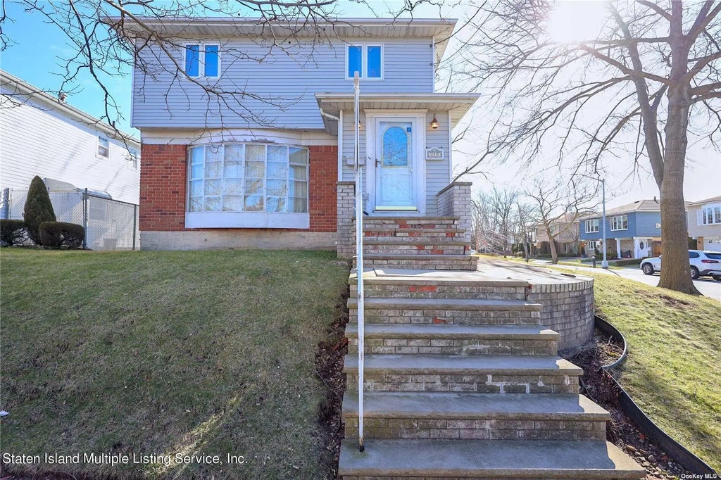 Welcome to this spacious Colonial-style home located on a large corner lot in the Richmondtown section. This property offers a perfect blend of generous space and classic charm. On the main floor, you are greeted by a foyer which leads to an enormous living space which includes: a living room, a large dining room, a family/sun lounge with sliding doors, an open kitchen layout with a second dining area. The custom kitchen boasts countertops, and an island for added workspace,stainless steel appliances, dishwasher, and garbage disposal. The sliding doors lead to a beautiful sunny porch/barbecue area and a backyard which had a wrap-around deck. Continuing on this main floor, you will notice a segregated bathroom and laundry area with a full-size washer and dryer. Upstairs, you'll find what seems like 3 similar bedrooms,and a beautifully tiled full bathroom, a full double-size hall closet plus a pull-down stairway which leads to a full size attic for even more storage. While each bedroom has spacious closets for storage, the master bedroom boasts 2 double closets plus a massive walk-in/pass-through changing/closet area. The other fully tiled bathroom includes a jacuzzi with a separate shower room adorned with windows and skylights. Access to the basement is on the main level, where there's also an additional outside side entrance. The huge basement, while unfinished, has multiple areas which includes: an exercise/pantry area, flows into a workshop which conveniently flows into the updated boiler and central air duct unit. There is extra storage space, and direct access to a well-lit double-car garage with a wide driveway. There is also a newly installed redundant drainage system along the inside edge of the garage to proactively manage any drainage needs. Fully fenced-in property, attached indoor access garage, patio, minutes to shopping, transportation, and highway. Schedule a tour today and experience the perfect blend of comfort, functionality at this large property