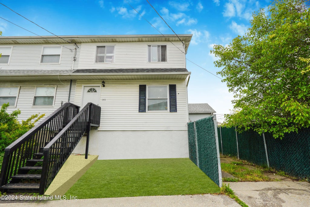 Welcome to 141 Baden place Step in to this end unit 2 bedroom warm and cozy end unit townhouse. Enter into large living room and newer eat in kitchen and stainless appliances, laundry room and coat closet and door to oversized large side and back yard. Laminate floors throughout both levels. 2nd floor has two very nice bedrooms plus custom 4-year-old tiled 3/4 bath with custom shower head. All raised panel doors throughout!! Home is great for first time buyers conveniently located close to shopping, transportation easy commute to Manhattan and Brooklyn. Why rent when you can own? Owner pays approximately 1000 a year for flood insurance