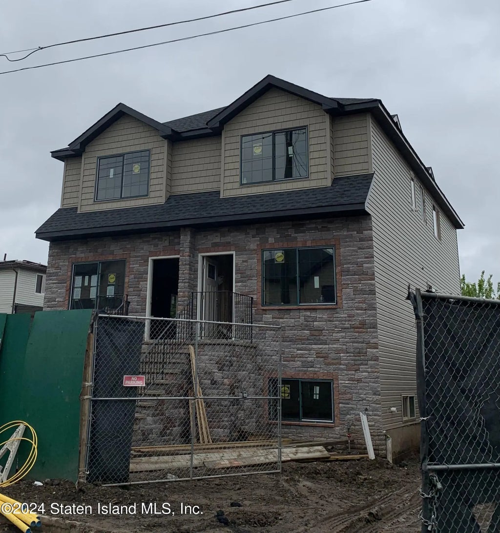 1 family semi attached home with full finished basement and off street parking for 2 cars. Eat in kitchen with sliders to yard, master bedroom with private 3/4 bath plus 2 additional bedrooms. Buyer pays transfer taxes, water meter and survey charges. Property tax to be determined by NYCDOF. Download, complete and email back ''Hold Harmless & Limit Liability'' form under Doc tab. Plans attached under Documents tab. All interior photos are of model home.