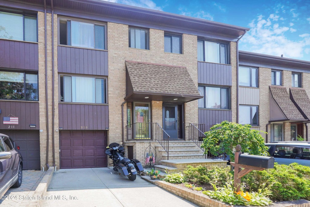 Prestigious ''Hills Of Grasmere'', 3 bedroom, 3 bath condo located seconds to the Verrazano. Easiest commute to Brooklyn, Manhattan and quick access to highway. Hardwood floors throughout, enter steps up to kitchen, 1/2 bath, living/dining combo, sliders to deck. Lower level garage with family room and 3/4 bath. Second floor 3 bedrooms, full bath, attic. Tennis, basketball courts, and pool. This unit has backyard access walk to pool. Don't miss this opportunity to live in Staten Island's most conveniently located community.