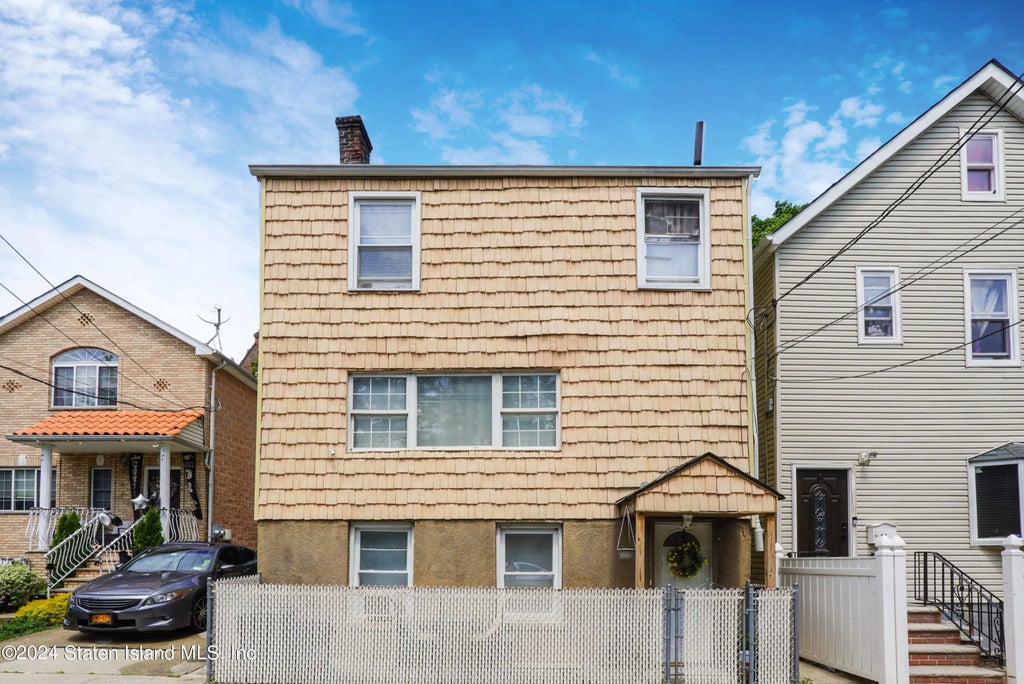 Legal 2 family being used as a 1 family. Perfect starter home with a studio rental to offset your mortgage payment or use the whole house for yourself. Well maintained studio apartment with full kitchen and full bathroom on the 1st level. Well maintained 2 bedroom apartment with full bath on 2nd and 3rd level. Beautiful and serene backyard for relaxation. Close to transportation, SI ferry and Verrazano Bridge. PROPERTY WILL BE DELIVERED VACANT.