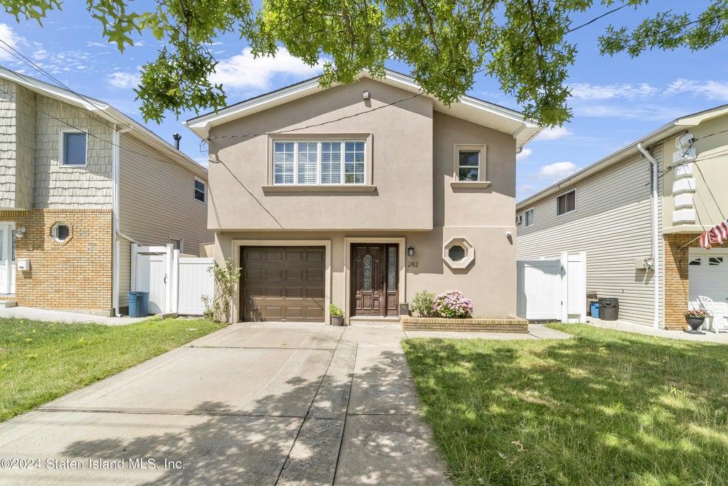 The Dream Team is proud to present this gorgeous single-family High Ranch home situated in Arden Heights. It's conveniently located near public transportation (S79/Eltingville Transit Center), shopping plaza, theater, and restaurants. The current owner has recently revamped the interior and exterior to provide the utmost comfort in living. That includes new flooring, a kitchen, and a bathroom on the 2nd floor, as well as new heating & cooling, stucco surrounding the house, roof, pavers in the backyard, and fencing—all within the last 4 years. First Floor: Foyer, Family Room, 2nd Kitchen, Full Bathroom, 4th bedroom, one-car garage. Second Floor: High ceiling all the way to the roof(foam insulation), 3 Bedrooms, Living Room, EIK kitchen, Full Bathroom Outdoor: SGD to the backyard with pavers and space for gardening. It is the perfect home for buyers looking for a great area with excellent schools for their children.