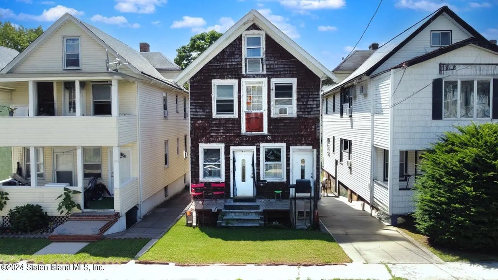 Here it is a 2 family in Rosebank! With some TLC, this two-family property could become a profitable investment, or you could live in one unit and rent out the the other. Both apartments - kitchen, living, 2 bedroom, full bath. There is an interior staircase starting form basement to the attic, stops at each floor. Separate access to this staircase from driveway. Basement and Attic 3/4 bath plus extended space. Call for your appointment now.
