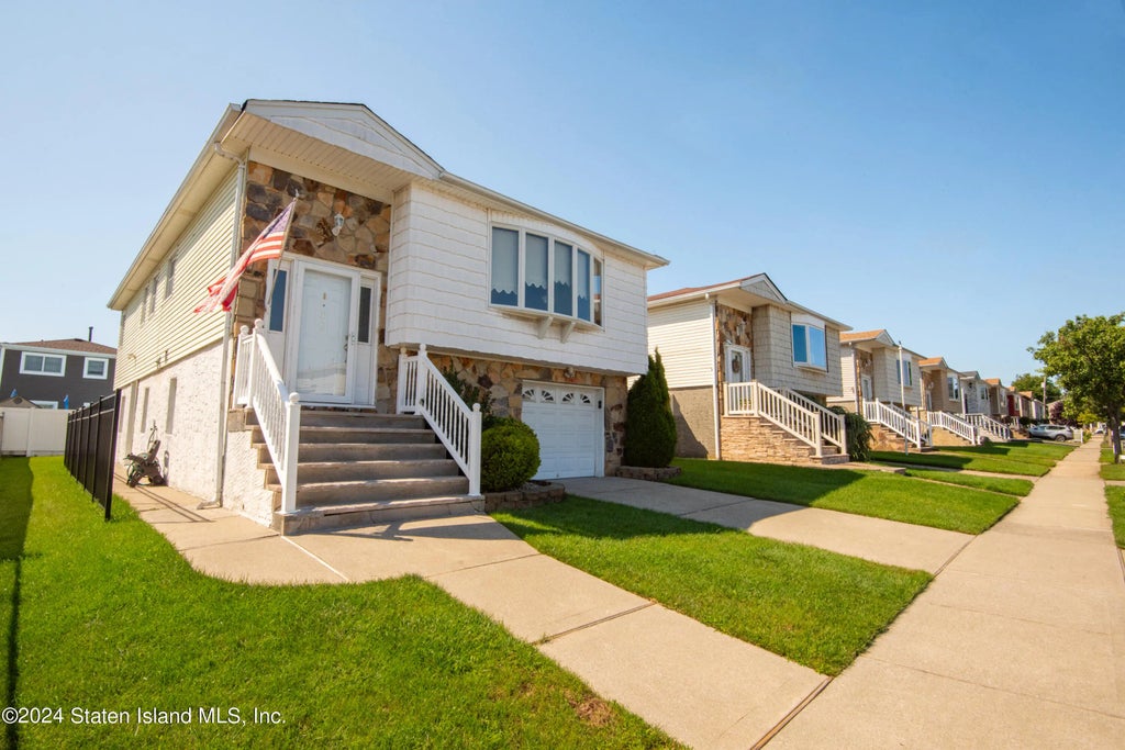 Situated on an extra wide residential block, this property is a thoughtfully designed multi-generational home that perfectly blends comfort, versatility, and space. This open floor plan includes 4-bedrooms, 2.5-bathrooms and is ideal for families or those seeking a flexible arrangement. The home boasts spacious bedrooms, hardwood floors, and abundant natural light. The well-appointed kitchen offers ample storage and an extra large pantry, ensuring functionality and convenience. Storage will never be an issue with plenty of attic and closet space throughout the home. The ground floor features an auxiliary unit with it's own entrance, providing an independent space for guests or family members. In addition to the central air, the ground floor features supplemental baseboard heating. The home includes a built-in garage with indoor access to the main living area, adding both convenience and security. Step outside to enjoy the well-maintained backyard, a versatile space perfect for family gatherings, gardening, or relaxation. Conveniently located just minutes away from the transit center and the Staten Island Mall, this home offers both excellent access to transportation and premier shopping and dining options. Situated in the Arden Heights section of Staten Island, it's close to schools, parks, and more. Don't miss the opportunity to make this versatile and spacious property your own!
