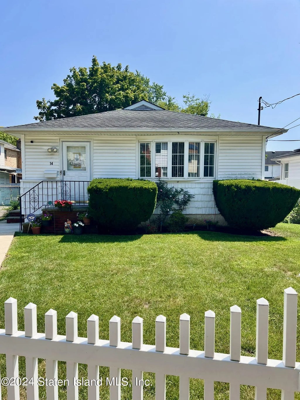 Welcome to 14 Zoe Street. Located above Hylan Blvd. This quaint home offers 3 spacious bedrooms with ample closet space. One 3/4 bathroom and One half bath. Hardwood floors throughout the house, finished basement and Heating and A/C are recently updated. Big back yard. This house is near all transportation and shopping. A must see. Sold as is.