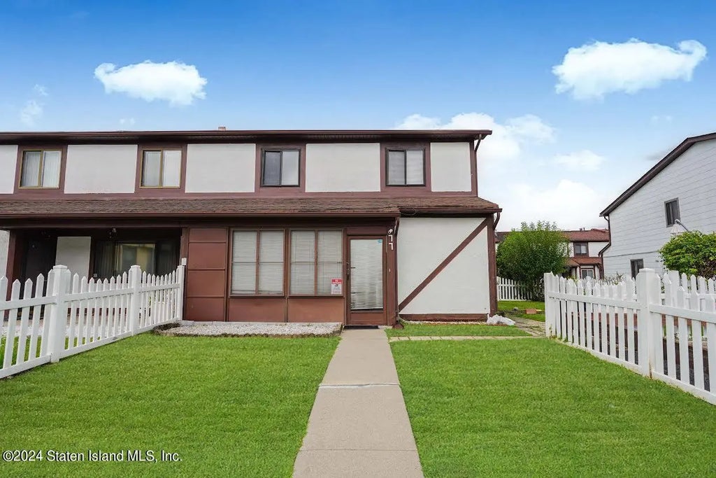 Perfect starter home! Come see this spacious 3 bedroom, 2 bath end unit , located in the Bulls Head area! Walk into an open living room/ dining room area perfect for entertaining. Spacious kitchen with substantial cabinet, and stainless steel appliances, 1/2 bath and laundry/utility area. Upstairs is a master bedroom with big bright windows for an open and airy feel, plus a huge custom walk in closet. 2nd and 3rd bedrooms have nice size closets and big windows, full bath and another big closet. This is also one of the very few homes in the development with a front yard, side yard & private parking ! Close to the S93 bus which goes to Brooklyn, buses to the Ferry. Close to highways #278 and #440. HOA fee includes roof and outside maintenance, and snow removal.