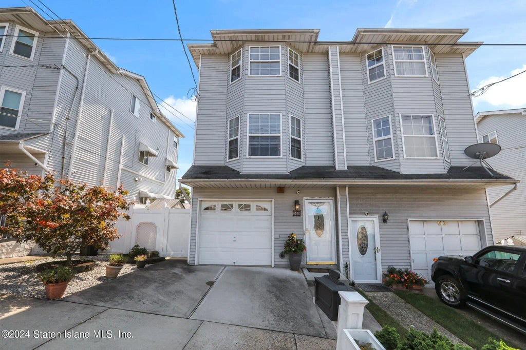 Spacious 3 bedroom home. First level entry with garage and family room. Second level light filled dine-in kitchen, stainless steel appliances, sliding glass door to deck, huge living room/dining room to accommodate a feast of any kind, and powder room. Third level 3 bedrooms and full bath. Flexible family room currently used as additional bedroom, 3/4 bath, entrance to low maintenance backyard with pergola and gardening space. Conveniently located near shopping, bus transportation, Old Town & Grasmere train stations, and the Verrazano Bridge. Lovingly cared for by the original owner. New AC installed in 2022. Move-in ready!