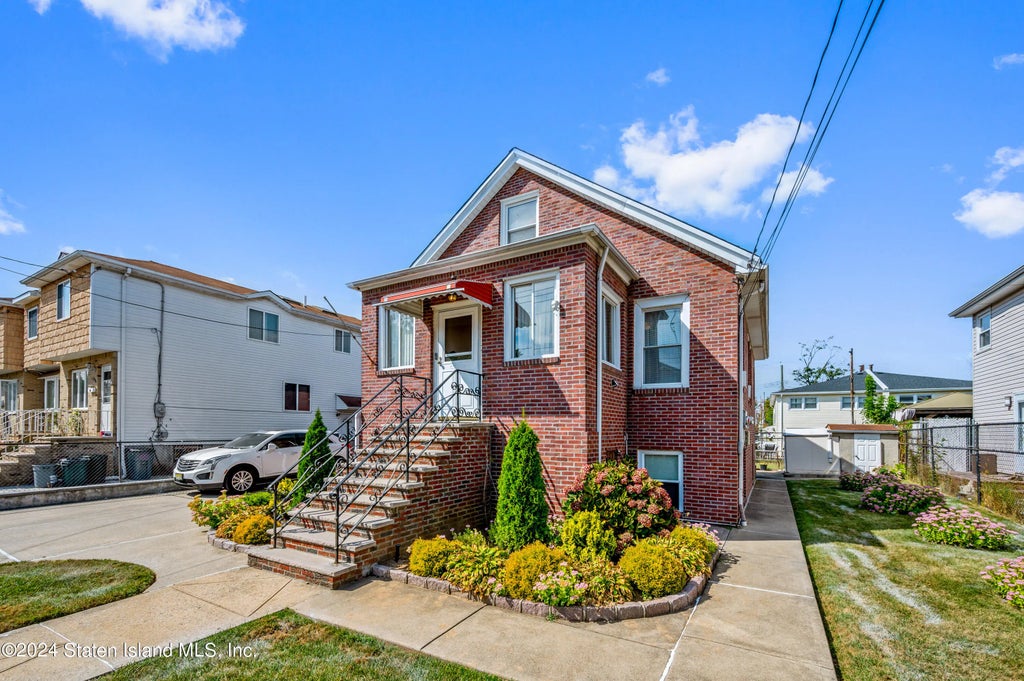 Gorgeous 2 family nestled in highly desirable neighborhood. Featuring 3 Bedroom 1 Bath with Private Driveway. 2nd apartment 1 bedroom 1 bath. Total building size 1,800 sqft. GREAT POTENTIAL for End user, move in ready or for Builder/Investor they have 60x100 Lot size to work with. NOT IN A FLOOD ZONE does not need flood insurance. Close proximity to Verrazano bridge and S.I. Expressway.