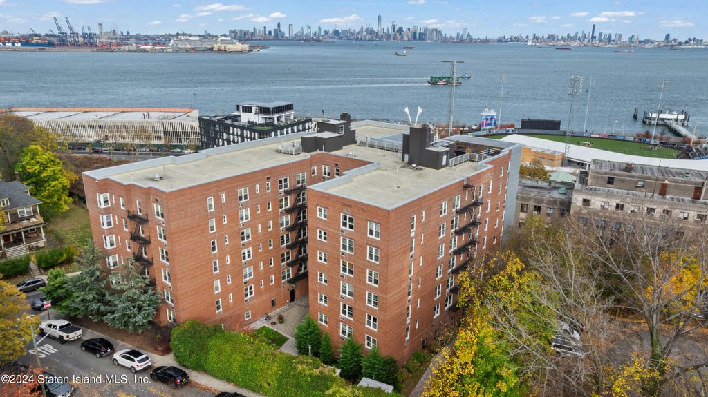 Move-in ready 1-bedroom, 1-bathroom co-op in the highly desirable St. George neighborhood of Staten Island. This spacious apartment offers approximately 750 sq.ft. of living space, featuring hardwood floors throughout, ample closets, and a modern kitchen with a dishwasher. Located on the 4th floor of a well-maintained elevator building, it provides convenience and comfort. Building amenities include two laundry rooms, a recently upgraded lobby, a fitness room, and a stunning rooftop deck with panoramic views of Manhattan. Enjoy outdoor living in the beautifully landscaped yard with a BBQ area and garden space. The HOA fee of $597/month covers all utilities except electricity. There is a monthly capital assessment of 64.01. Situated just minutes from the Staten Island Ferry, with nearby access to Empire Outlets and waterfront attractions, this home is perfect for commuters and those looking to enjoy all the perks of city life. Minimum 20% down payment is required. Purchaser subject to application fees and co-op board approval. No dogs - cats ok. Subletting is allowed after 3 years.