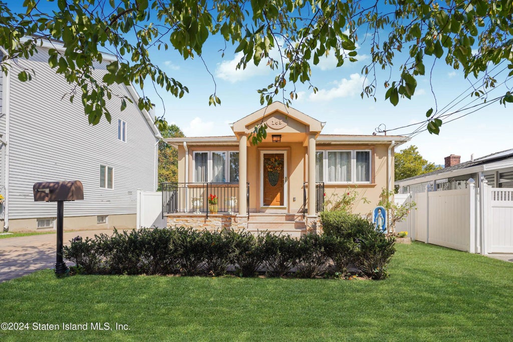 This beautifully renovated ranch home in the sought-after neighborhood of Dongan Hills, offers modern elegance and comfort in a serene suburban setting. The exterior boasts charming curb appeal with a stucco facade, aluminum siding   and manicured landscaping welcoming you to a sweet and comfortable home. Living area is drenched in natural light, highlighting the gleaming tile flooring. The fully renovated kitchen features sleek, stainless steel appliances, granite countertops, custom cabinetry,  perfect for entertaining. The adjoining living room is warm and spacious. The home includes 3 bedrooms, and tastefully updated bathrooms featuring marble countertops, and elegant tiling. The finished basement offers additional space including kitchen, a full bathroom, laundry room and an additional room that can be used as a guest room or family room. Outside, the private, fenced backyard is a true oasis, with a newly installed pavers for outdoor dining and is well-maintained perfect for relaxation or play. Located in the desirable Dongan Hills neighborhood, this home is just minutes from  shopping, and public transportation, combining the best of suburban living with convenient access to the city.