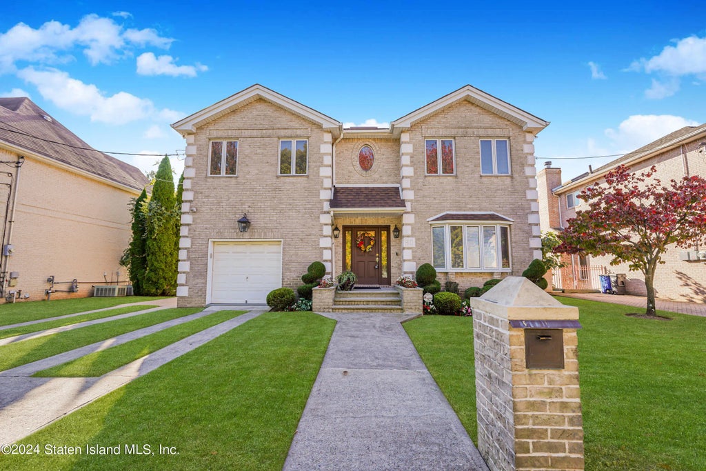 Nestled on a beautiful private street, this newer 4-bedroom colonial offers a blend of modern amenities and classic charm. The home welcomes you with a grand two-story, fully tiled entrance that boasts a skylight, flooding the space with natural light. The formal living room features gleaming hardwood floors, recessed lighting (high hats), and elegant glass pocket doors leading into the formal dining room, ideal for gatherings. The large, eat-in kitchen is immaculate, with granite countertops, a spacious island, and a custom desk offering ample storage. The kitchen also provides access to a rear deck, perfect for outdoor dining. Off the kitchen is a convenient half bath, and it overlooks a cozy family room complete with a wood-burning fireplace and recessed lighting, creating a warm and inviting space.Upstairs, the second floor features all hardwood floors and includes four(4) generously sized bedrooms and a main bathroom. The master bedroom is a luxurious retreat with cathedral ceilings, recessed lighting, and a private balcony. It includes a walk-in closet and an exquisite ensuite bath, complete with a Jacuzzi, a bidet, and custom fixtures. The fully finished basement is perfect for entertaining, featuring a extra area, a ¾ bath, and a recreational space with an additional gas fireplace. The yard is meticulously maintained, with large granite tiles that provide a clean and polished outdoor space. This home has been thoughtfully designed with convenience in mind, offering features such as Pella windows wired to an alarm system, 4-zone heating, radiant heat on all tiled areas, and a central vacuum system. The house is also equipped with 24 temperature sensors and 25 water sensors, along with an automatic main shut-off valve. Located just minutes from the Verrazano Bridge, with easy access to local and express buses to Brooklyn and Manhattan, this home has been lovingly maintained by its original owners. Enjoy all the comforts this exceptional home has to offer