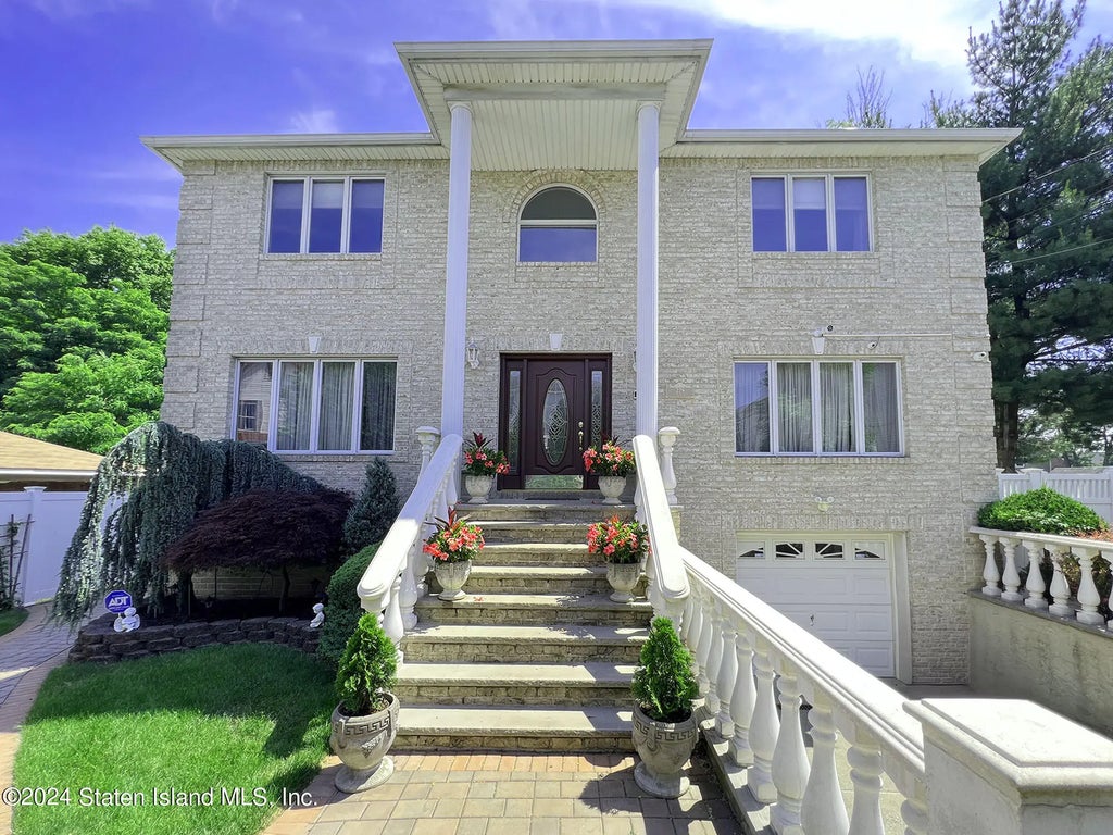 Beautifully maintained, fully detached, TWO FAMILY, Center Hall Colonial in Tottenville!! This gorgeous home sits on a 7400 sq ft 'flag lot'...the beginning of the property, the private driveway, is 20 ft wide but opens up so the home sits on a 60ft wide lot...the entire property from the street goes back 188 feet!!!!!  The long driveway offers off street parking for 6-8 cars and it allows the home to be tucked away for extra privacy...this home is perfect for multi-generational living and is walking distance to schools, public library, parks, restaurants, shopping, houses of worship and public transportation. Level 1: Living Rm, Dining Rm, 1/2 bath, coat closet, Family Room with gas Fireplace, Eat in Kitchen has new appliances,  sliders to yard, Level 2: Primary bedroom has private 4 piece bath, two walk in closets, three additional spacious bedrooms with large closets, full bath. Basement is fully finished with walk out access to side yard, laundry, 3/4 bath, summer 'kitchen', an additional family room, tons of storage, plus a extra room that is perfect for guests. Separate studio apartment with full bathroom. Beautiful hardwood floors & decorative mouldings throughout the home, fully paved backyard with storage PLUS a built in one car garage. Please note: Driveway is a private driveway... it is NOT a shared driveway.