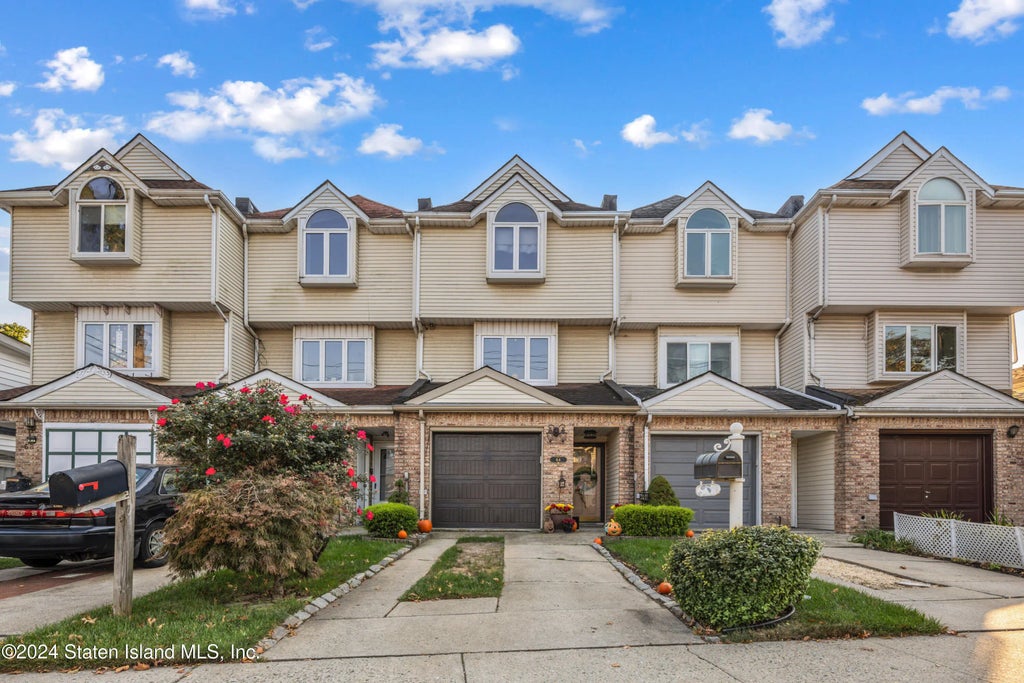 The first floor boasts a versatile family room with a ¾ bath, which can double as a guest or third bedroom, complete with a spacious closet. Ascend to the second floor to find a spacious living and dining room combination, a half bath, and a fully separate eat-in kitchen with custom all-wood cabinetry. Noteworthy upgrades include a stone electric fireplace, an enclosed porch, and plexiglass interior doors for the pantry and walk-in closet.