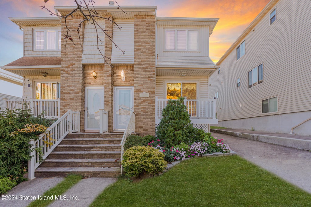 Gorgeous 1-family, 3-bedroom, 2.5-bath, semi-attached home in the exclusive Emerson Hill is nestled on a beautiful and quiet, cul-de-sac just minutes from Verrazano Bridge. This spacious house is in excellent condition. Featuring a great layout with a formal dining room, hardwood floors, freshly painted finished basement with a ¾ bathroom, split unit heat/AC, and a separate laundry room with storage. The large paved backyard with a concrete deck is perfect for relaxing and entertaining, and the oversized lot comes with a long side-driveway. The home has many updates including a new Trex front deck, new hot water heater, newer HVAC system as well as Andersen sliding doors, granite kitchen island, and a recently updated, elegant main bathroom. Conveniently located close to highway, parks, schools, beaches, all types of shopping and restaurants, and public transportation.