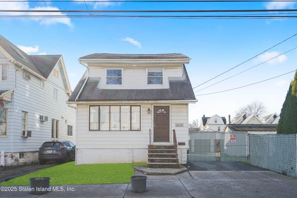 Detach single family with a gated driveway and detach garage. S46 Bus stop right outside of the house with plenty of store around the neighborhood. House feature hardwood floor, granite countertop, separate island, side and backdoor entrance for an easy backyard access. Huge living room, separate dining room, guest hall bath on the first floor. Three large size bedrooms. Lot to the right not include in this listing