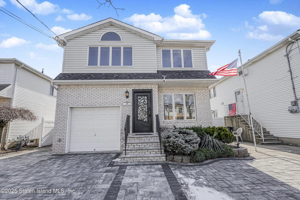 LARGE detached Two family home. This Custom front door invites you into the formal living room, formal dining room, large eat in kitchen with granite counters & backsplash, Island, Pella sliders to yard, Cozy family room. Fully tiled 1/2 bath just, one car built in garage. The 2nd Floor offers 4 bedrooms, Master Bedroom with a private fully tiled 3/4 bath w/skylight, His & Hers walk in closets. The Fully Finished basement has it all, a built in custom wet bar with fresh air vent, wood trim doors and windows, private side entry, large laundry/storage room, furnace room, 3/4 bath ceramic tile perfect for entertaining or guest suite. the Custom oak flooring redone 2 years ago, baseboard heating, recessed lighting, 3 zone heat, 2 zone a/c, basement has its own Central A/C. Large yard is fully paved and landscaped with a bbq gas line to the house. Pavers in driveway, flagpole, & shed. Large and bright second floor studio apartment nicely done Cathedral ceilings, Granite Counters W/ full Backsplash, Oak floors & central a/c (can take 4th bedroom back to make it a 1 bedroom rental). Centrally located in Rossville and close to all shopping, transportation, and schools. Room for everyone so Come make this house your next home!