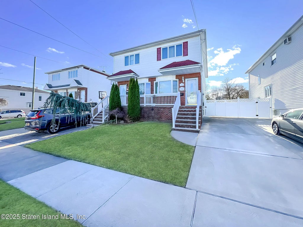 So lovely describes this one family home in Bay Terrace. Very desirable location near all transportation, shopping, great schools and parks. Much newer siding, windows, furnace, hot water heater, fence and concrete. Wood floors throughout. Not just a house, this is a home! LEVEL 1: Entry, living room, dining room, wood floors, eat in kitchen, access to yard, coat closet. LEVEL 2: Three large bedrooms, full bath, attic. BASEMENT: Full finished, laundry, utilities, 1/2 bath.