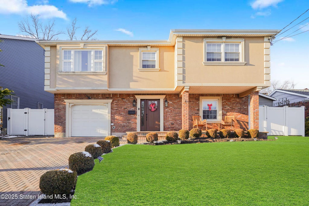 Beautiful MBR with two closets, very tastefully designed middle bedroom complete with a custom-built closet,spacious third bedroom currently used as an office.A brand-new master bath, fully tiled with beautiful accents & a gorgeous glass shower door, provides a spa-like retreat. All new interior doors, New Front door. French door into large family room featuring a wood-burning fireplace, new flooring, and a new stunning Andersen slider leading to a paved patio beneath the deck. Spacious half bath with brand-new flooring, oversized laundry room with utilities, access to the garage. Outside,enjoy a double-wide paver driveway, a well-manicured 5,700 sq. ft. lot with an outdoor sprinkler system, and ample space for leisure activities and entertaining! The beautiful front porch adds incredible character to this home. Additional highlights include five heating zones, security system, newer washer and dryer, recessed high-hat lighting throughout, all exquisite light fixtures and beautiful window treatments included. With its thoughtful upgrades and impressive features, this property is a true gem.