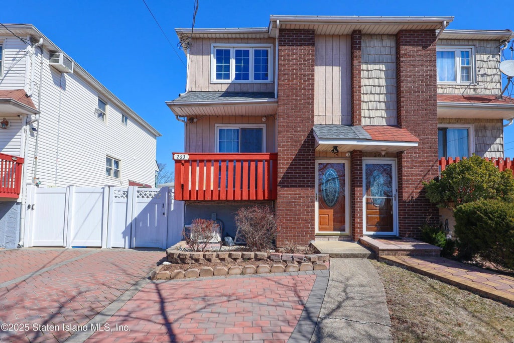 Welcome to this beautifully maintained semi-attached single-family home, perfectly situated just minutes from shopping, dining, and transportation. Located only a few blocks from Hylan Blvd. and within proximity to Midland Beach, this home offers both convenience and comfort. Property Features: First Floor: Spacious open-concept living and dining area with access to a charming front balcony. Updated eat-in kitchen with sliding glass doors leading to a deck and spacious backyard. It has a convenient half bath and multiple storage closets. Second Floor: Three generously sized bedrooms with ample natural light. Updated full bathroom and a linen closet for extra storage. Access to attic space for additional storage. Basement (Separate Side Entrance): Dedicated home office space, Cozy family room, Functional laundry room, Modern 3/4 bath, Abundant storage options. Additional Highlights: Solar panels installed in 2022 (leased at approx. 130/month). New roof (2022). Flood insurance is 577/year. *****Private driveway for multiple cars***** This Staten Island gem won't last long! Schedule your private tour today!