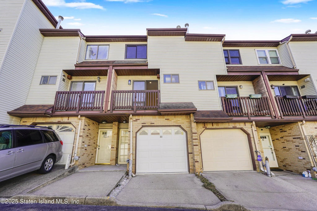 SITUATED NEARBY ALL CONVENIENCES YET SECLUDED ON A PRIVATE STREET THIS HOME HAS ALL YOU NEED. LOW HOA & TAXES MAKE THIS THE PERFECT PLACE TO BUY. RENOVATED IN 2025 THIS SPLIT LEVEL TOWNHOUSE PROVIDES MODERN PERSONALIZATION. THE NEUTRAL DECORE IS SURE TO PLEASE. OVERSIZED LIVING ROOM FEATURES 18FT SOARING CEILINGS RECESSED LIGHTS ILLUMINATE YOUR MAIN LIVING SPACES. THE FOCAL POINT FIREPLACE CREATES WARMS & AMBIANCE. FORMAL DINNING ROOM CAN ACCOMMODATE UP TO 6 PEOPLE. OPEN CONCEPT KITCHEN FEATURES STAINLESS APPLIANCES, GRANITE COUNTERS WITH ISLAND SEATING FOR MULTIPLE PEOPLE. RENOVATED BATHROOMS WITH WOOD LOOK TILE AND CARRARA MARBLE SLABS. GOLD ACCENTS COMPLIMENT THE SPACE. BRAND NEW FLOORING THRU OUT. 2 KING SIZED BEDROOMS LOCATED ON TOP FLOOR. CUSTOM LIGHTING PERSONALLY SELECTED . LOWER LEVEL ALLOWS FOR 3RD BEDROOM OR FAMILY ROOM. LARGE BUILT IN GARAGE & DRIVEWAY PARKING. PRIVATE DECK OFF LIVING ROOM BRINGS THE OUT DOORS IN! BALCONY OFF KITCHEN IS PERFECT FOR MORNING COFFEE. MINUTES TO TRANSIT CENTER ,SECONDS TO LOCAL BUS & SCHOOLS, GREENRIDGE SHOPPING PLAZA, SUPERMARKETS , COSTCO SI MALL , HYLAN BLVD YOU NAME IT - ITS NEARBY. DONT MISS THIS OPPORTUNITY TO OWN THE PERFECT TOWNHOME!