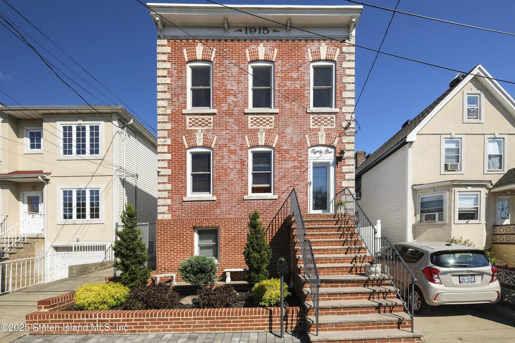 Built in 1915, this Brick/Stucco ''detached brownstone style'' home has decorative limestone windowsills and cornices, raised front steps, partial basement above grade, and driveway. Deep lot enables a retreat style oasis with decorative plantings, fully paved yard with gazebo ideal for gardening, entertaining, and room to add onto existing house. The home is currently being used and sold as a one family. Ground floor consists of large open finished room, storage closet, utility room, laundry room with additional storage ideal for wine cellar. First floor you enter a common hallway/staircase with access to the ground level/basement, 1st and 2nd floor units. 1st floor unit has a living room, eat in kitchen, full bath, bedroom with access to small deck and oversized fenced yard. 2nd floor unit has a living room, eat in kitchen, ½ bath, and two bedrooms. Well maintain, central and unit air conditioning, easy access to expressway and bridges, shopping, buses, schools, restaurants, and more.