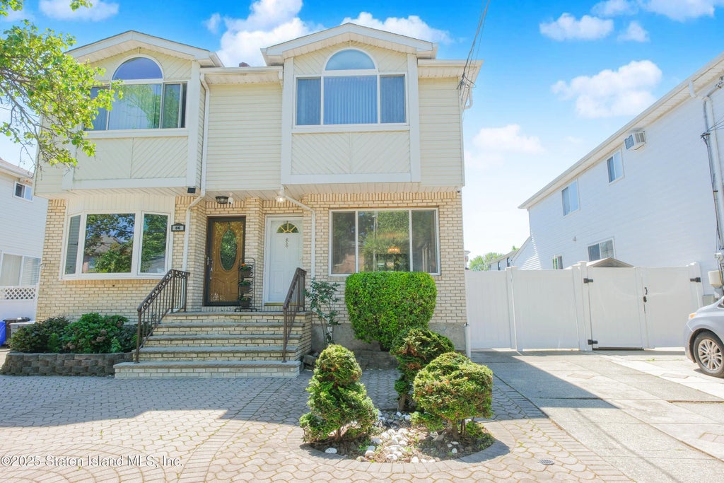 Welcome to 88 Jumel Street, a spacious semi-detached home in the heart of Great Kills located on a very inviting block. This well maintained home is seeking a buyer who will make this house their home. The first floor offers a Living Room/Dining Room combo, Half Bathroom, Open EIK and Family Room with a Skylight and sliding doors to a deck and yard. The second level is where you will find a large primary Bedroom with Vaulted Ceilings and a private 3/4 Bathroom, two additional spacious Bedrooms and a Full Bathroom. The Basement has high ceilings, Laundry, Utility Closet with a two year young HVAC, 3/4 Bathroom and a separate entrance to access the side, front and rear yard. Call for your tour before it is gone!!