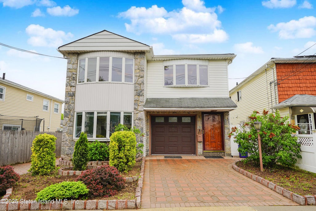 This impressive two-family high ranch, situated on a separate lot, features a built-in garage and a fully finished basement, offering ample living space. The main level has an open concept living area and dining room with high ceilings and elegant Brazilian cherry hardwood floors, along with central AC throughout the whole unit. There are three generously sized bedrooms, including one with a full bathroom with a separate shower. The kitchen and dining room area includes a half bathroom and sliding glass doors that lead to the large backyard with an above-ground pool and hot tub, which is ideal for entertaining. The fully finished basement includes many different accessories such as a wet bar, sauna, steam room, jacuzzi and abundant storage. The property also includes a two-bedroom rental apartment with a private entrance, EIK , living room, a full bathroom. Additional features include two boilers and two hot water tanks, with tenants responsible for their own separate utilities.